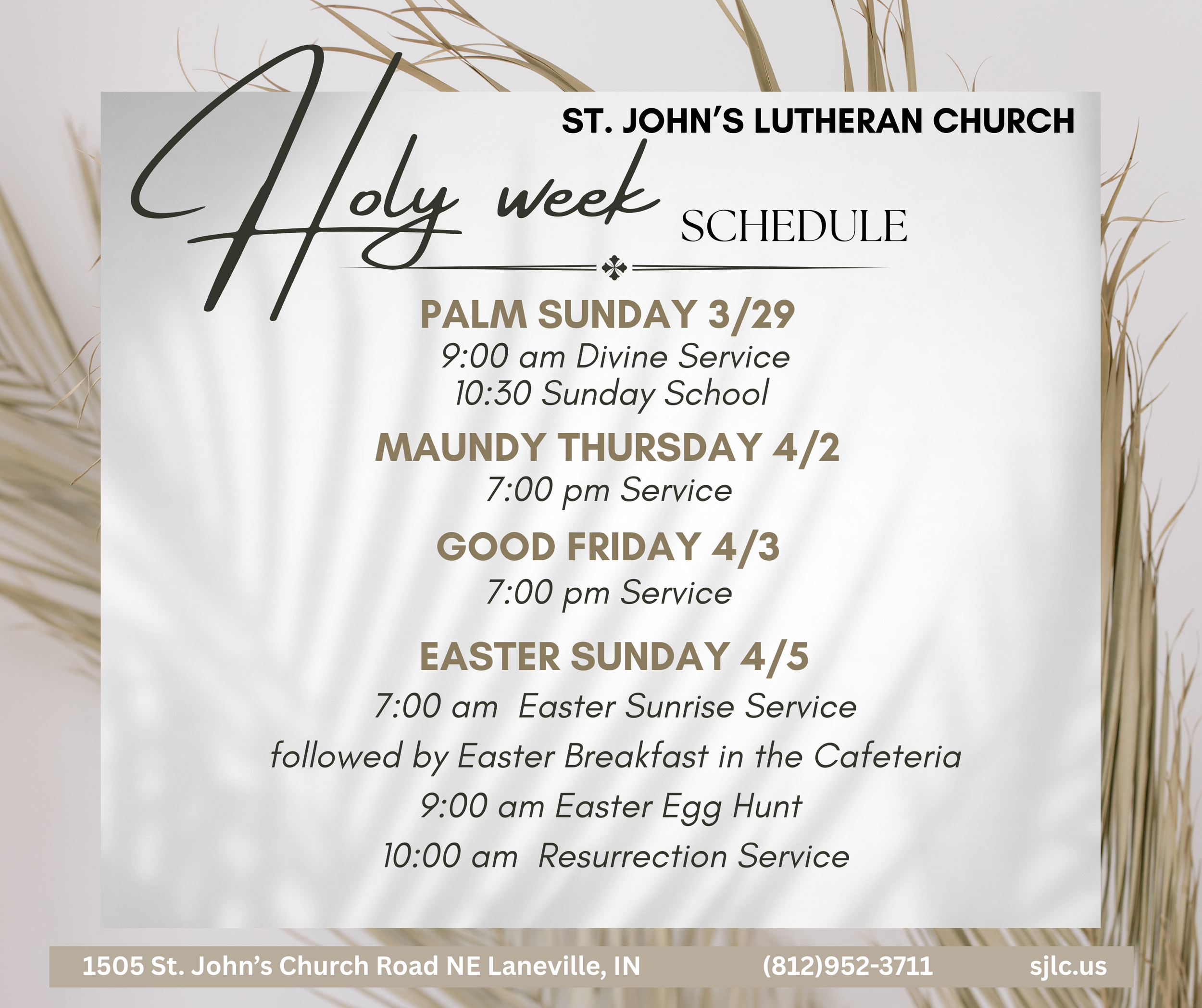 The service will be posted on the screens in the church. For easier reading, please notify the church office at 812-952-3711 and ask to be added to the mailing list for the weekly bulletin. That way, you can follow even if you are watching on a small screen. And you’ll never miss the announcements!